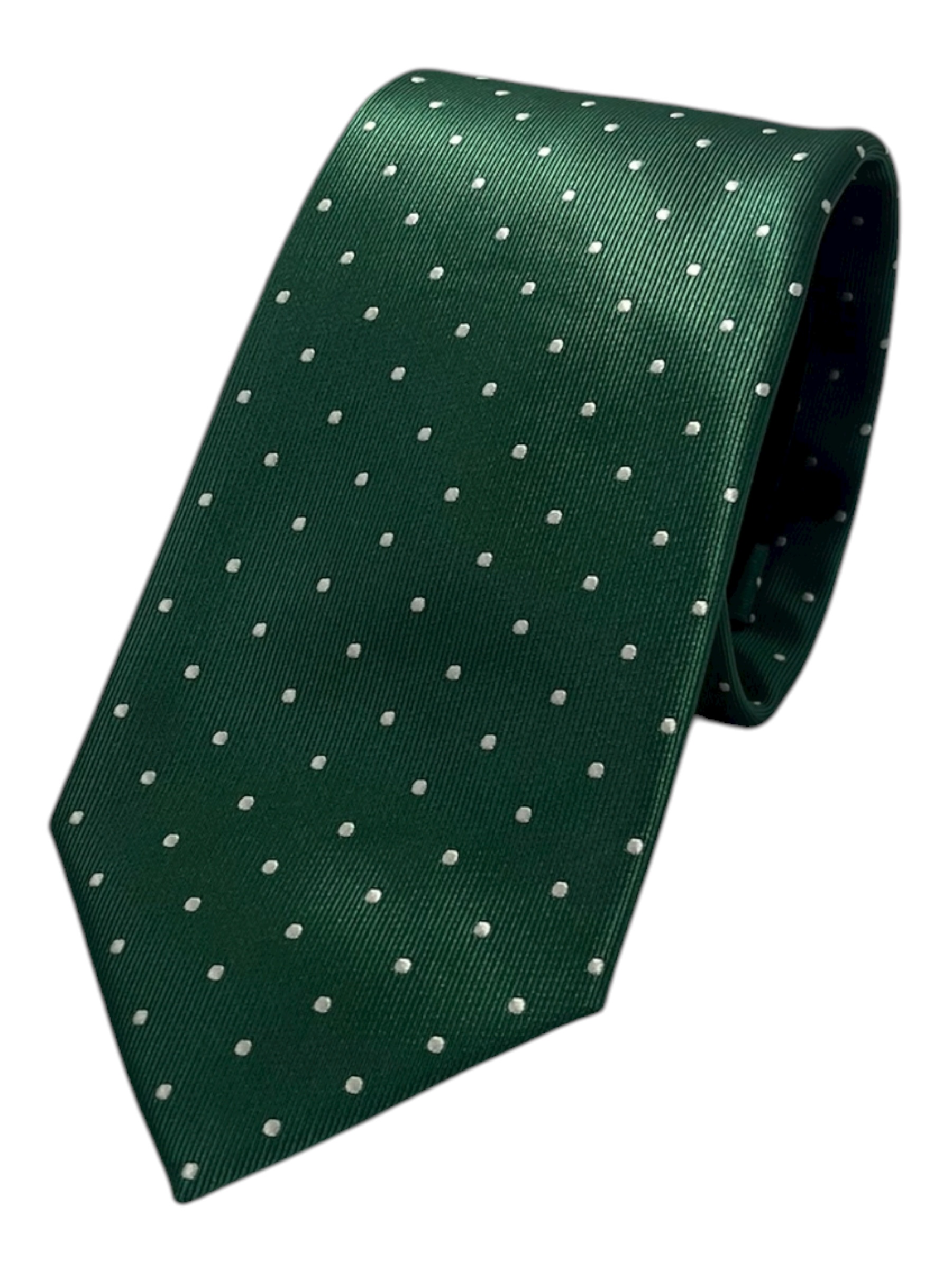 Una corbata con un clásico pero funcional diseño formado por lunares blancos pequeños. Esta corbata tiene una anchura de 8cm en su pala más ancha.