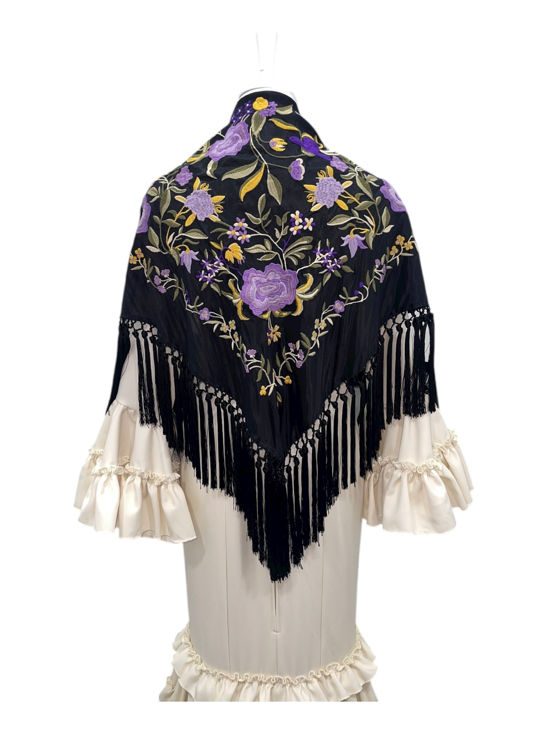Ideal para acompañar trajes de flamenca, estilismos de gala o como pieza protagonista en eventos especiales, este mantón fusiona lujo, tradición y autenticidad.