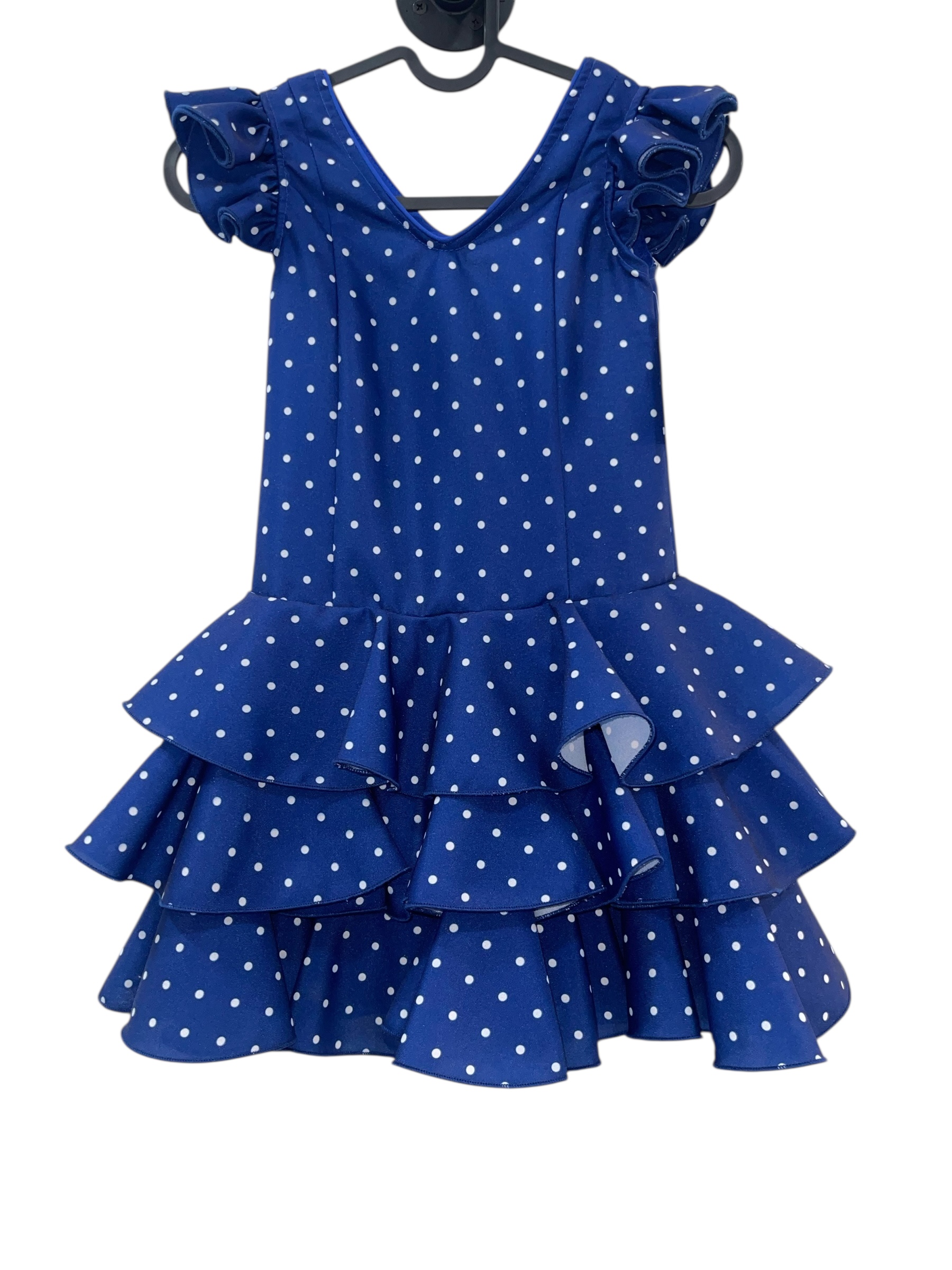 Su diseño incluye dos volantes suaves y bien definidos que aportan gracia y volumen sin sobrecargar. La manga rematada con volante añade un toque clásico y coqueto, perfecto para completar el conjunto flamenco.